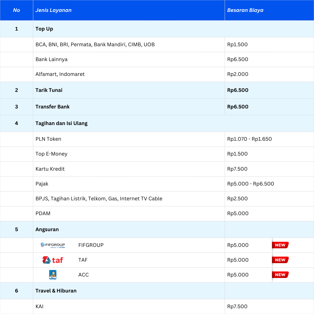 Jika produk & layanan tidak tertera dalam daftar ini, biaya admin GRATIS!
