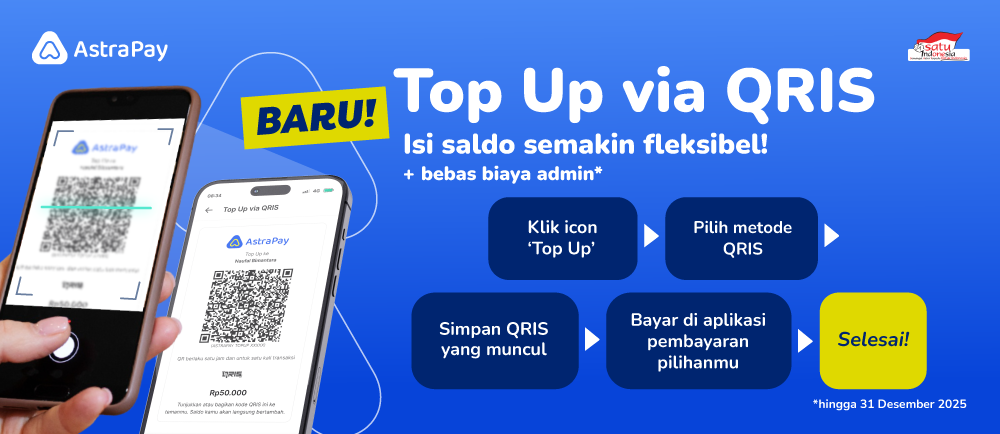 Mau top up tanpa biaya admin? Atau lagi nggak punya akses ke mobile banking? Tenang, sekarang kamu bisa top up saldo AstraPay cukup dengan QRIS Top Up, cara yang super simpel dan bisa dilakukan dari aplikasi pembayaran apa pun yang mendukung QRIS.