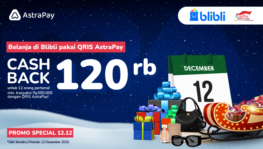 Diskon 12.12 selalu jadi momen paling ditunggu buat belanja akhir tahun. Nah, pada tanggal 12 Desember 2025, AstraPay hadir dengan kejutan spesial: Cashback Rp120.000 untuk 12 orang pertama yang belanja di Blibli menggunakan QRIS Blibli dengan saldo AstraPay.