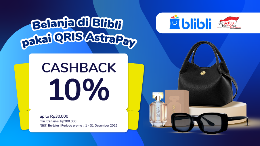 Akhir tahun adalah waktu paling pas buat belanja kebutuhan rumah, gadget, sampai hadiah natal dan tahun baru. Kabar baiknya, AstraPay punya promo spesial buat kamu yang belanja di Blibli selama 1–31 Desember 2025. Cukup transaksi di Blibli dengan QRIS AstraPay, kamu bisa dapat cashback 10% (maksimal Rp30.000). Hematnya nyata, syarat dan ketentuanya gampang!