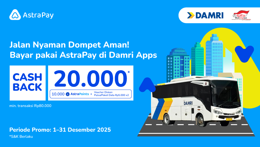 Mau bepergian lebih nyaman tanpa bikin kantong seret? Selama 1–31 Desember 2025, kamu bisa nikmati cashback total 20.000 AstraPoints + voucher diskon cukup dengan transaksi minimal Rp80.000. Cocok banget buat kamu yang sering bepergian dan ingin tetap irit sepanjang akhir tahun.