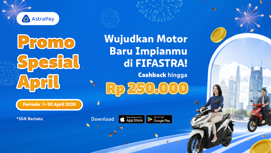 Dapatkan Cashback Hingga Rp 250.000 untuk setiap pengajuan motor baru yang berhasil disetujui melalui aplikasi AstraPay!
