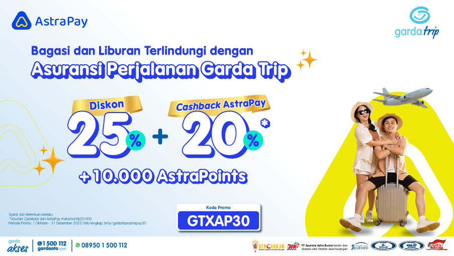 Lindungi perjalananmu dengan asuransi perjalanan Garda Trip dari Asuransi Astra dan dapatkan perlindungan dari risiko perjalanan, seperti pembatalan, keterlambatan, penyakit, cedera, hingga jaminan bagasi dan barang pribadi. Nikmati manfaat lengkap dengan premi mulai dari Rp33.500 untuk kenyamanan liburanmu!