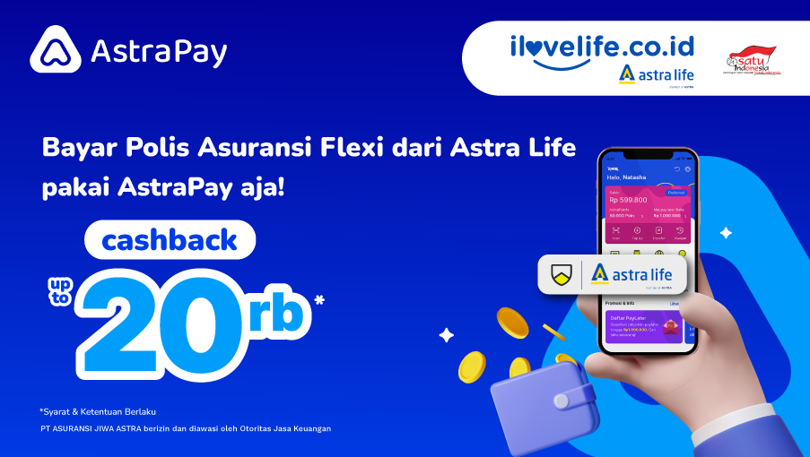 Jangan lupa juga, khusus untukmu, bayar polis pake AstraPay ada cashback up to 10% hingga Rp 20ribu!