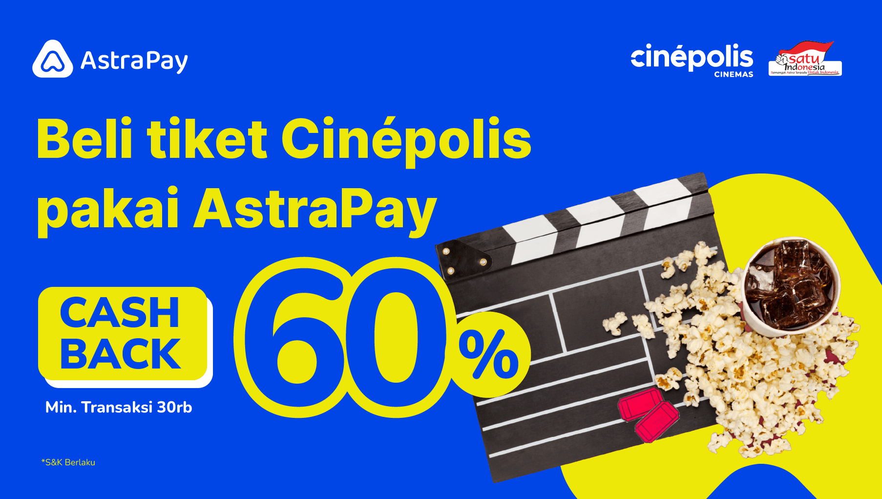 Dapatkan cashback 60% untuk nonton film dan jajan di Cinepolis dengan bayar pakai AstraPay!
