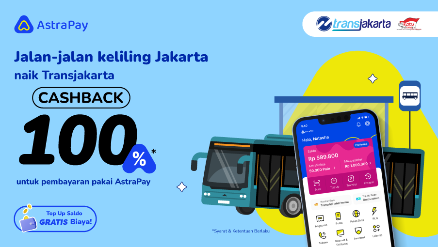 Siapa sih yang gak suka di traktir? Naik TransJakarta kini semakin murah loh!! Beli tiket TransJakarta pakai AstraPay dan dapetin cashback dari AstraPay sebesar 100%.