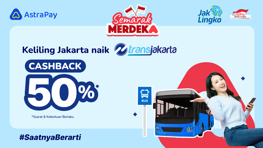 Siapa sih yang gak suka di traktir? Naik TransJakarta kini semakin murah loh!! Beli tiket TransJakarta pakai AstraPay dan dapetin cashback dari AstraPay sebesar 50%.