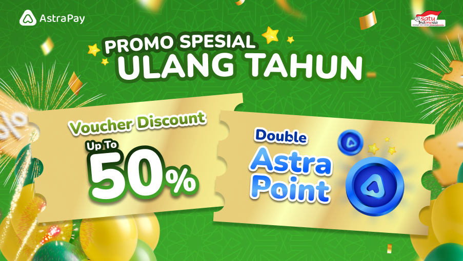 Satu Voucher untuk Seluruh Transaksi di AstraPay seperti transaksi Angsuran, QRIS, Pulsa, Paket Data, PLN, Internet & TV Kabel, Gas, Voucher Game, PDAM, Telkom, Donasi Zakat.