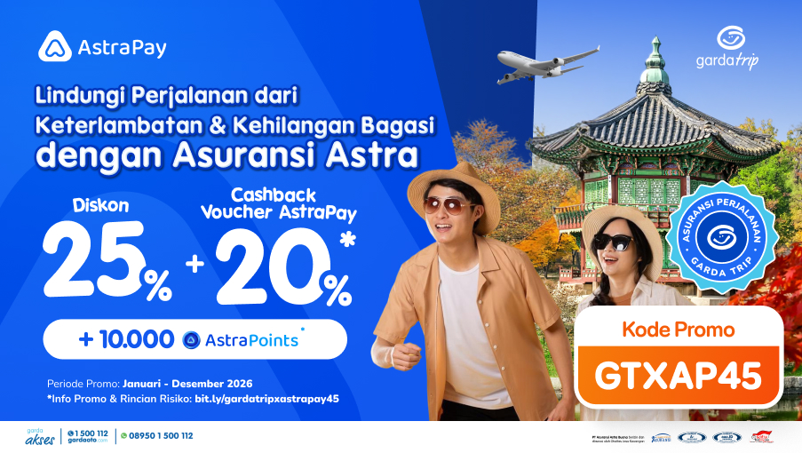 Lindungi perjalananmu dengan asuransi perjalanan Garda Trip dari Asuransi Astra dan dapatkan perlindungan dari risiko perjalanan, seperti pembatalan, keterlambatan, penyakit, cedera, hingga jaminan bagasi dan barang pribadi. Nikmati manfaat lengkap dengan premi mulai dari Rp33.500 untuk kenyamanan liburanmu!
