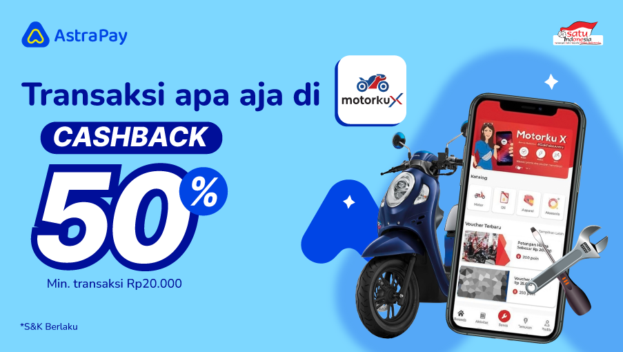 Spesial di bulan ini, setiap pemesanan service atau pembelian spare parts melalui aplikasi MotorkuX, kamu bisa dapetin cashback hingga 50%. Menarik banget kan? Yuk, rawat motor kamu sekarang!