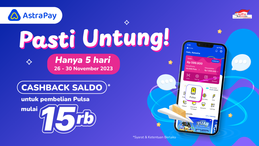KHUSUS buat kamu beli pulsa di AstraPay 15.000 untuk provider apapun Cuma bayar Rp8.000!