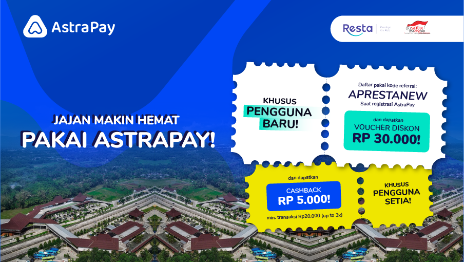 Baru pertama kali pakai AstraPay? Langsung daftar pakai kode referral: APRESTANEW dan dapatkan voucher diskon Rp30.000 untuk transaksi di semua tenant Resta Pendopo KM 456.